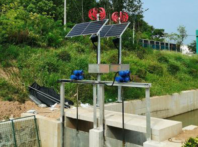 由太陽能光伏板和小型風力發電機為蓄能電池組充電,電池組有BMS電池管理軟件管控,為永磁無刷直流電機的各類驅動裝置供電,同時為視頻監控,壓力、流量、液位傳感器,照明等供電